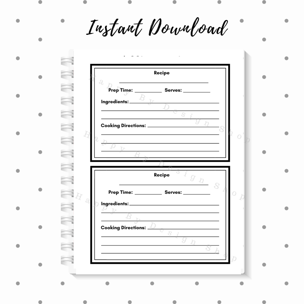 Keep your favorite Recipes in one special place with our Recipe Printable Journal! Our recipe journal includes 78 recipe cards, perfect for quick access to quick meal ideas for you and the whole family!